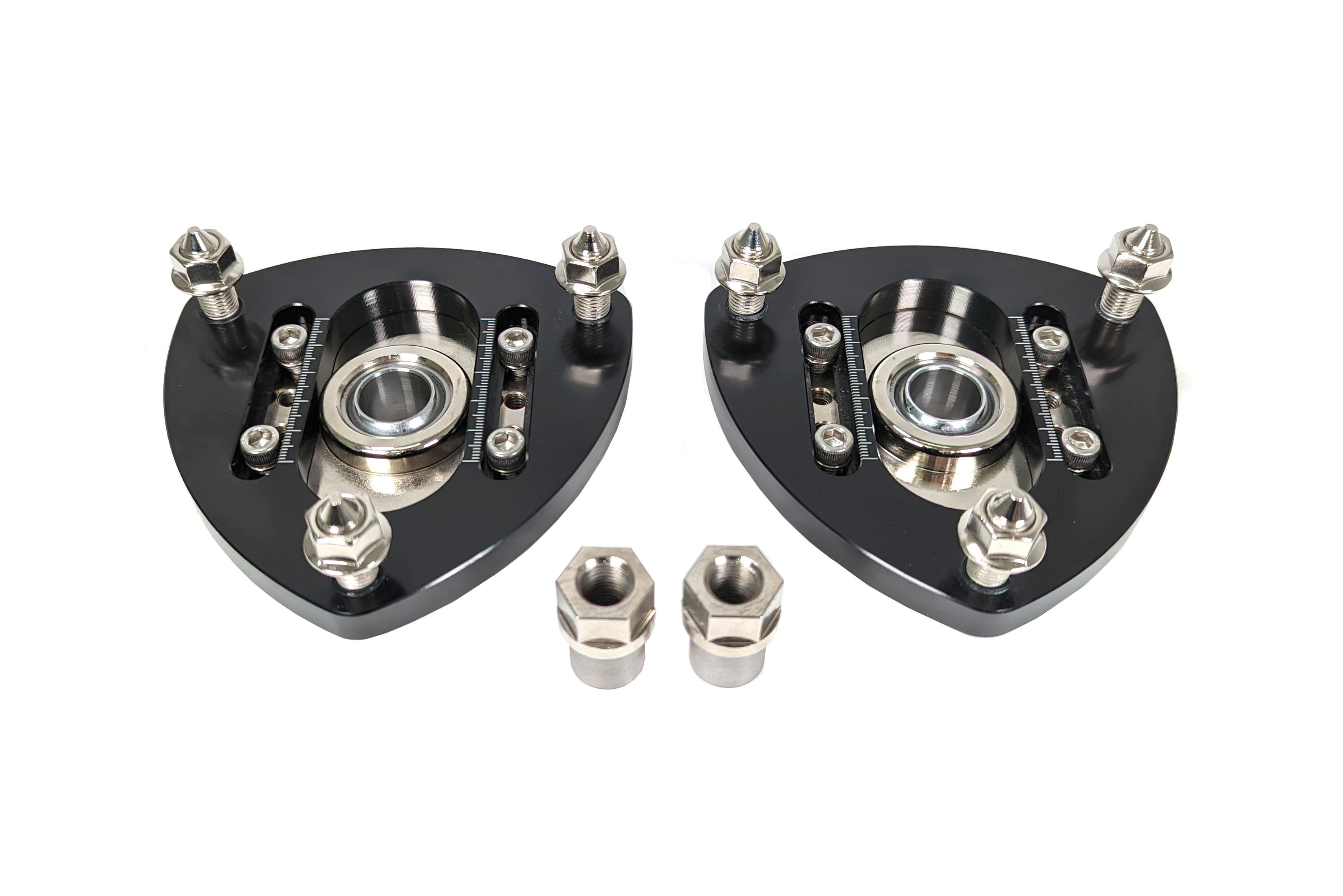 Most MacPherson struts do not have any camber adjustability from the OEM, so what do you do? Depending on the amount of drop from your lowering springs and your driving needs, you may need to purchase aftermarket camber plates to get your suspension dialed in or to prevent your meaty wheel and tire setup from rubbing!